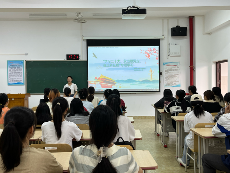 团日活动中,同学们齐唱团歌,在团支部书记带领下依托统一制作的课件,观看视频等形式,学习党的二十大的主题、精神等一系列大会报告的重要论述。通过学习,同学们结合“五个牢牢把握”要求,深度思考对“做什么,为什么,怎么做”这一历史命题,立志做有理想、有本领、有担当的时代新人,为全面建成社会主义现代化强国、为实现中华民族伟大复兴中国梦贡献青春力量。