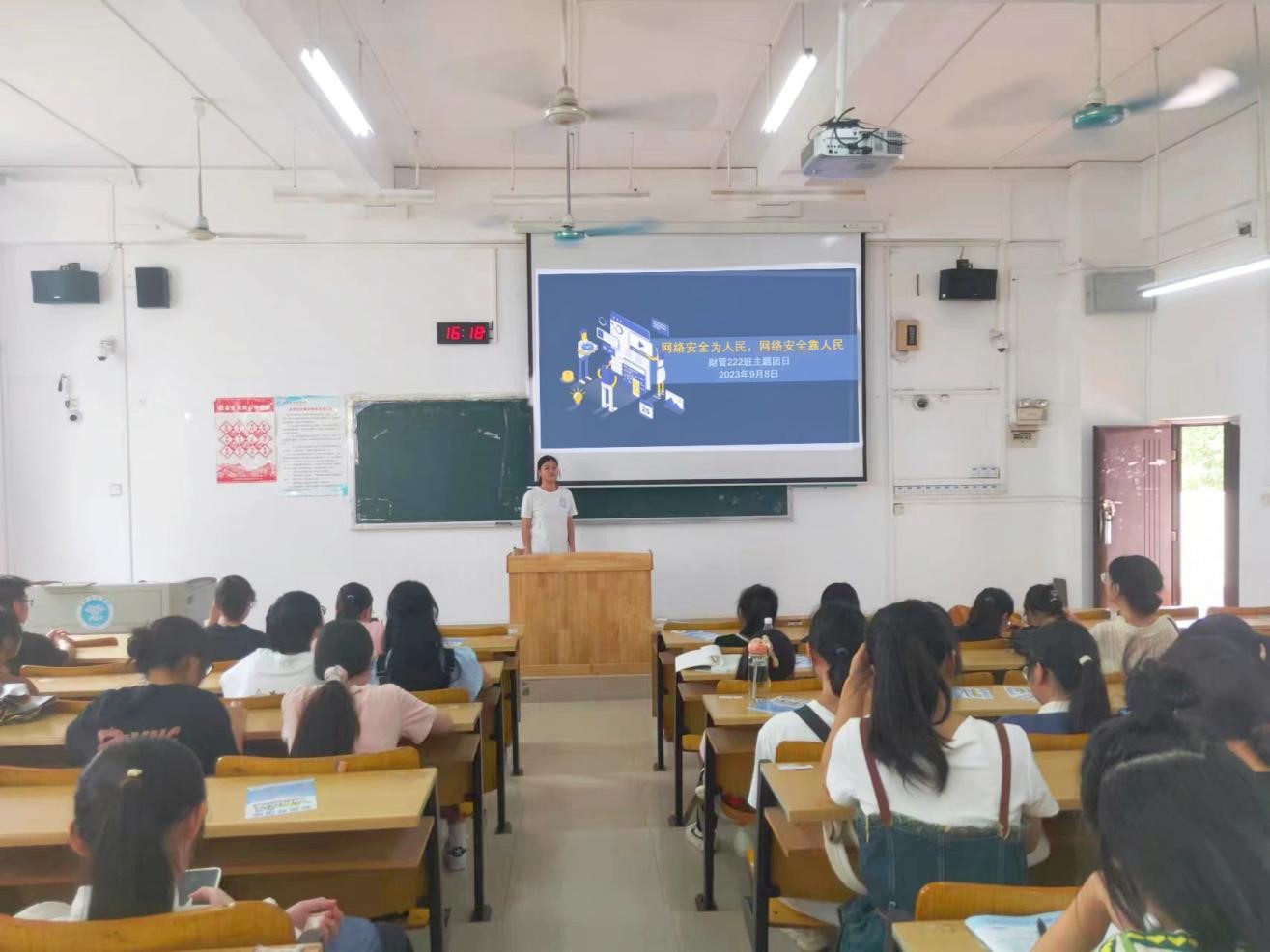 为增强同学们的网络安全防范意识,促进青年的健康发展,做合法、守法好网民。财管222班于2023年9月8日下午在博学2101教室召开“网络安全为人民,网络安全靠人民”主题团日活动,此次会议由团支书黄德辉同学主持,财管222班同学共同参与。