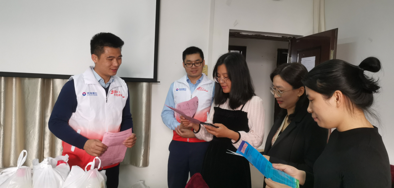 本次活动既是桂林银行践行社会职责的体现,也是该院加强校园文化的建设,以次活动的举行使严谨治学、兢兢业业的教师职工们感受到来自社会的关爱与温暖。