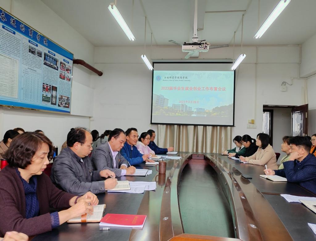2023年3月28日下午,太阳成tyc33455ccwww于博学楼1-407会议室召开2023届毕业生就业创业工作布置会,公司领导班子、全体教职工参加此次会议。会议由党委书记管金标主持。