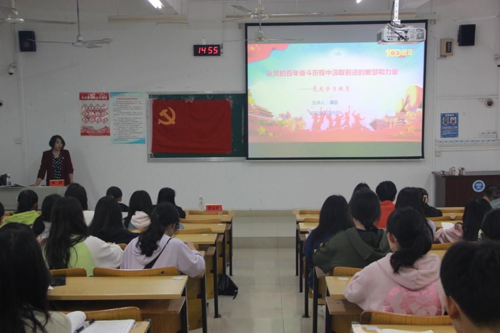 此次培训会中,全体参会同学共同观看关于中国共产党发展的相关视频。随后,谭荔对中国共产党的百年发展历程、以及为什么中国共产党能行进行了讲解。她表示:入党积极分子应当树立远大的志向,端正自己的态度,努力学习,锻炼意志,坚定入党决心。入党积极分子要从思想认识和政治觉悟上高度重视、认真对待、积极参加培训,自觉接受党组织的培养、教育和考察,在学习成长的方方面面都要与普通群众有所区别,做到“平时看得出,关键时刻站得出,危难时刻豁得出”,真正做到在思想上和行动上完全入党。最后,谭荔强调,作为一名入党积极分子,我们一定要听党话、跟党走,积极参加党组织的培养教育,主动加强党史和党章学习,提高对党的认识,争取早日成为一名光荣的共产党员。