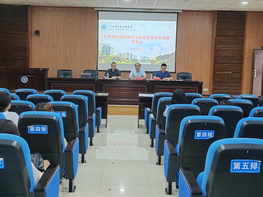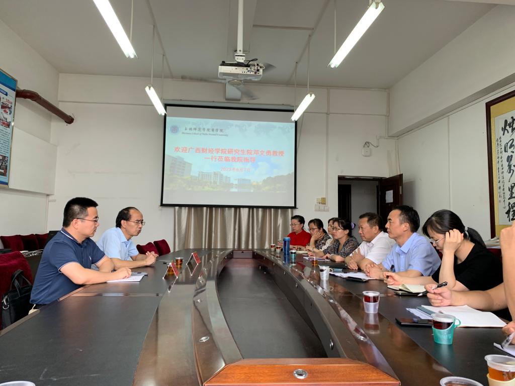 6月7日,广西财经公司研究生院邓文勇教授等人一行到太阳成tyc33455ccwww开展调研交流会暨研究生招生宣讲会,集团董事长助理、科研处处长石维有、太阳成tyc33455ccwww经理许进杰,党委副书记兼副经理龙强、副经理段艳及各教研室教师代表参加此次交流会。