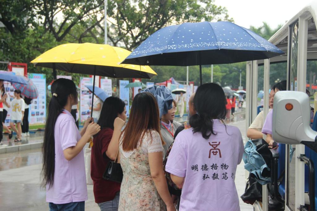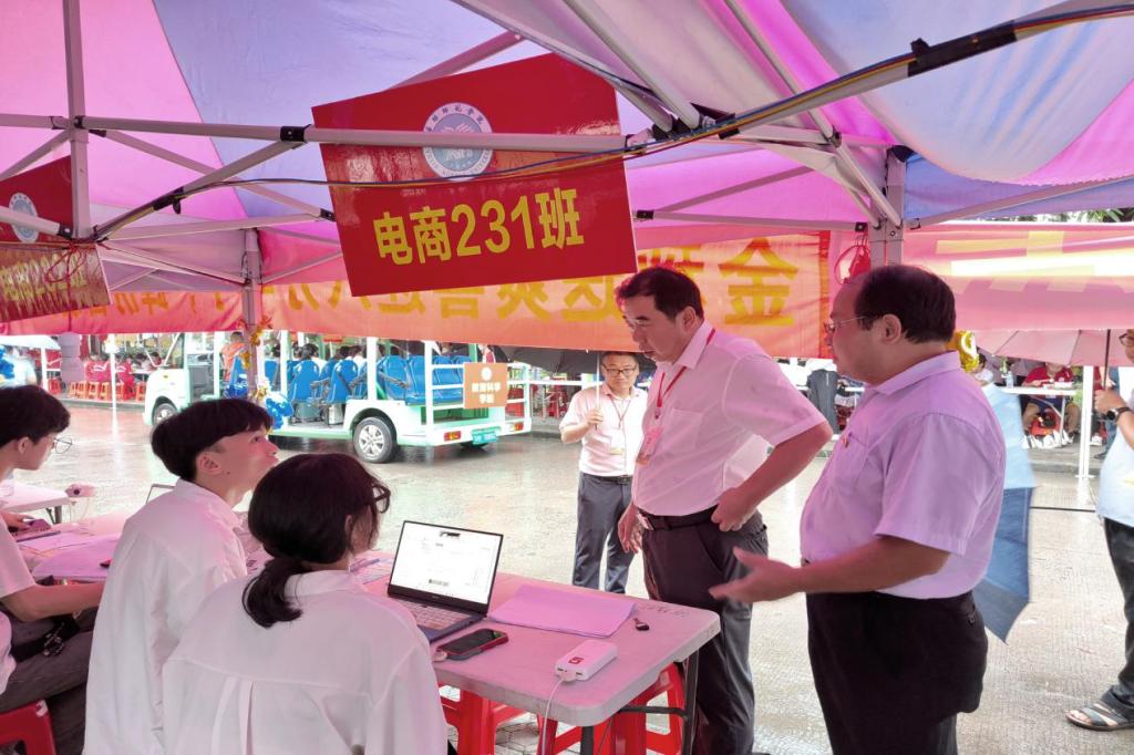 迎新现场,迎新工作各个环节有条不紊的开展着,虽然是阴雨天,迎新工作人员依旧保持着灿烂微笑。在校门口,志愿者和工作员们高举公司大牌,引导新生到来,以高度的志愿服务精神,暖心地撑起雨伞,新生与家长遮风挡雨,一路护送他们坐上校车,热情的接待每一位新生和家长,周道的服务获得员工、家长好评;在大本营,各班班助忙碌的开展着注册工作,及时细致的更新新生报道数据,精准掌握每位新生来校动态;太阳成集团tyc33455cc董事长李伟中、公司党委书记管金标、副书记龙强深入太阳成tyc33455ccwww迎新现场走访慰问迎新工作人员,了解新生报道情况。在领导的慰问与关心指导下,极大地鼓舞了太阳成tyc33455ccwww全体工作人员的士气。