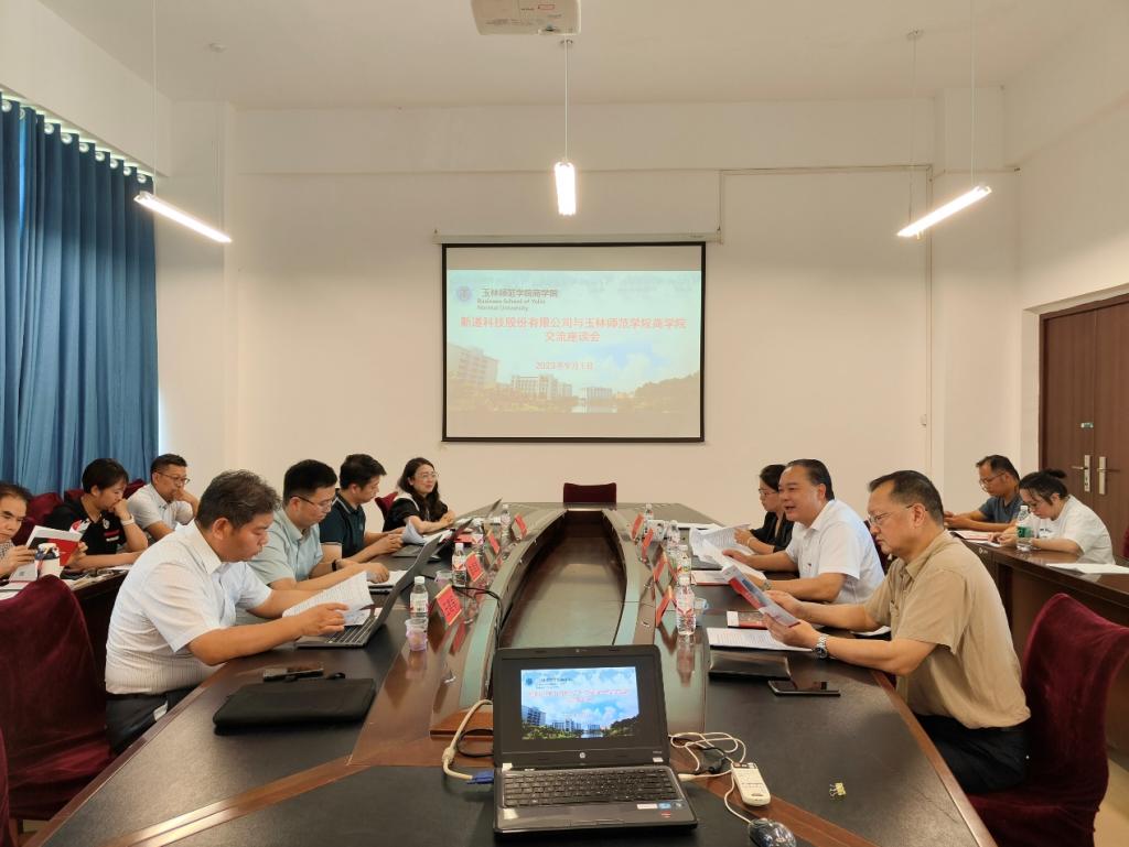 9月1日,太阳成tyc33455ccwww与新道科技股份有限公司于公司东校区清源楼212会议室举行交流座谈会。公司党委书记管金标、副经理段艳、副经理姚静武、电子商务、市场营销专业负责人及骨干教师,广西布道天下信息产业有限公司袁开总经理、新道科技有限公司高级教育规划顾问陈海浩、新道科技股份有限公司高级教学规划顾问王建军、新道科技股份有限公司广西分公司校企合作经理李宏参加本次座谈会。座谈会由段艳主持。
