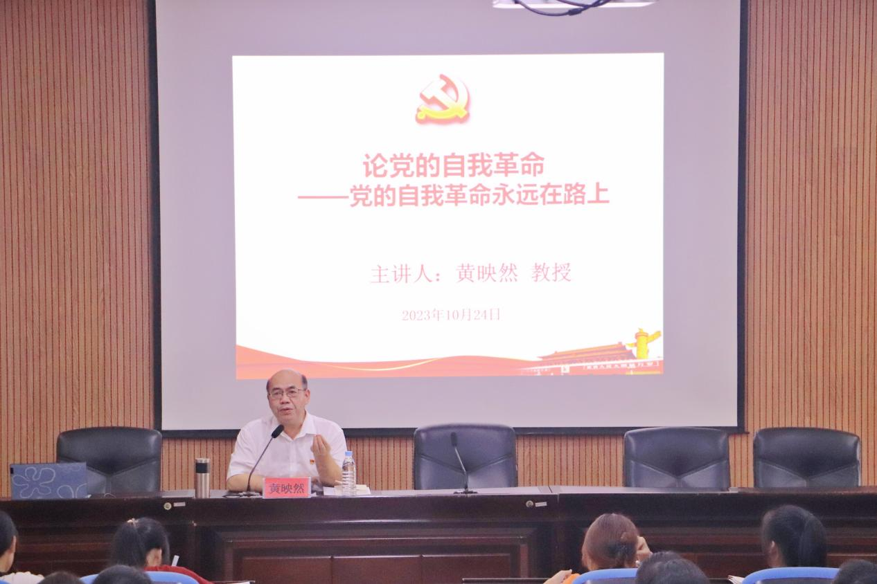 课上,黄映然从自我革命是跳出历史周期率的必然选择、勇于自我革命、坚持人民至上、开展批评和自我批评、坚持加强党的集中统一领导等方面展开讲授,引导积极分子们学习《论中国共产党历史》等书目,阐述了如何深入学习贯彻党的自我革命。