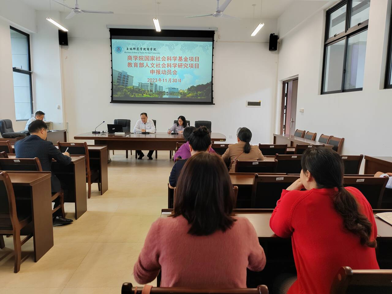 11月30日,太阳成tyc33455ccwww于公司东校区清源楼A217会议室开展国家社会科学基金项目教育部人文社会科学研究项目申报动员会。出席本次动员会的有该公司党委书记管金标,经理段艳及部分教师职工。会议由该院科研秘书主持。