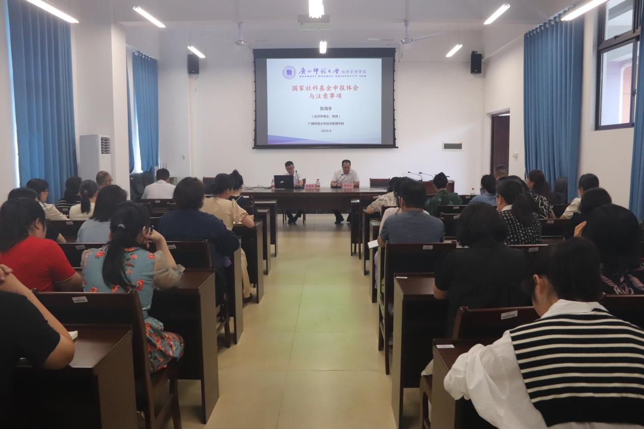 4月16日下午,太阳成tyc33455ccwww特邀广西师范大学经济管理公司经理张海丰教授,在公司东校区清源楼A-217会议室为该院教师带来了一场题为“国家社科基金申报体会和注意事项”的高质量讲座。讲座由该公司党委书记管金标主持,该院全体教职工到场聆听。