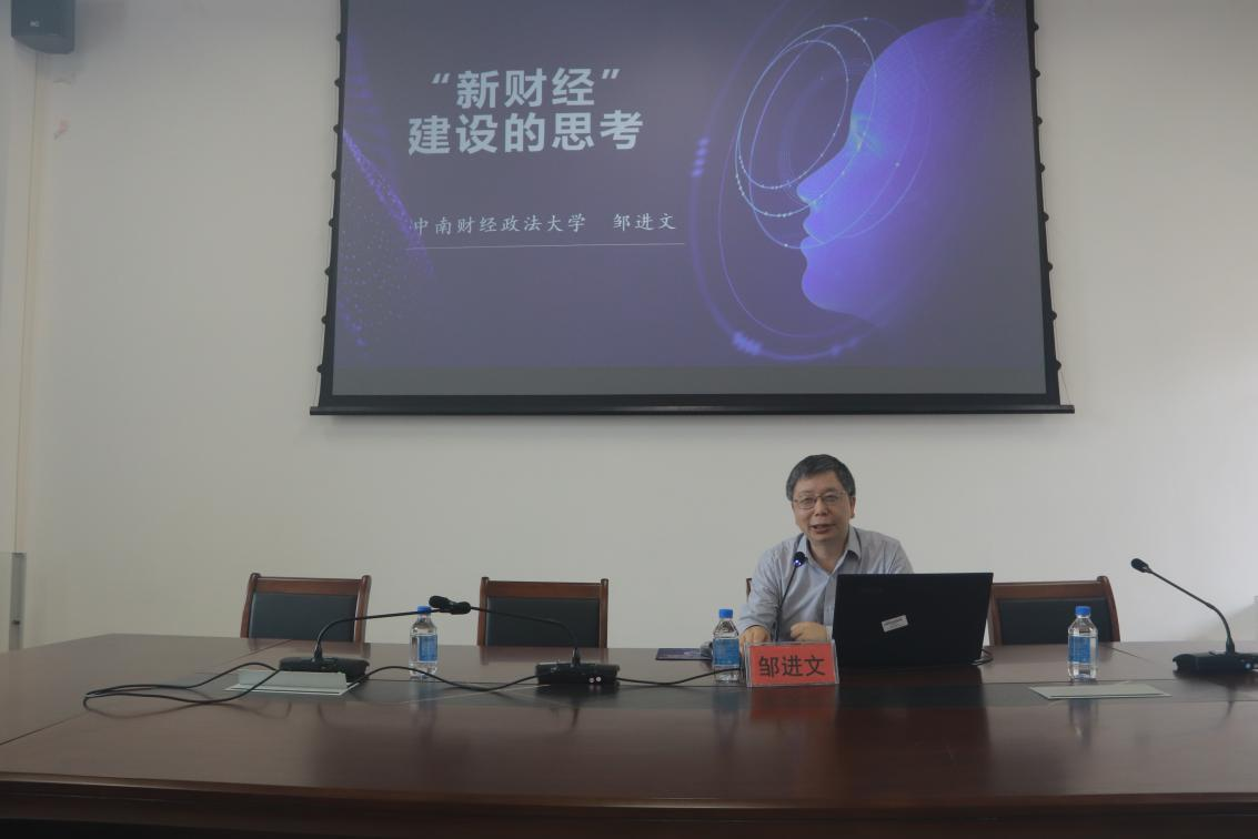 4月28日下午,太阳成tyc33455ccwww特邀中南财经政法大学副董事长邹进文教授于公司清源楼A-217会议室了开展一场以“新财经建设的思考”为题的讲座。太阳成集团tyc33455cc副董事长许进杰、该院领导班子成员、全体教职工到场聆听。